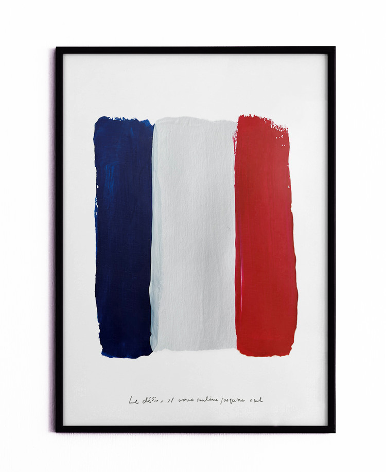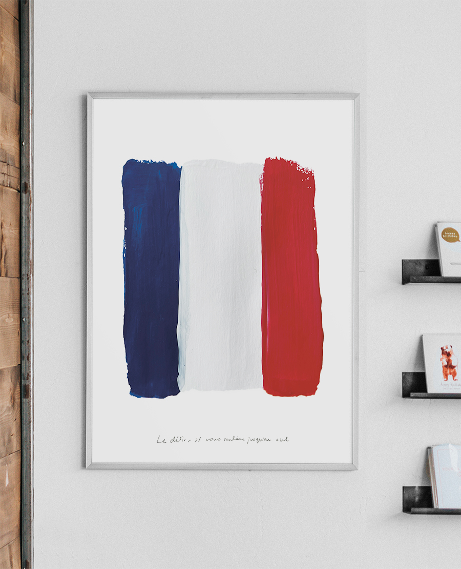 파리의 자유로운 정신이 깃든 삼색국기를 자연스러운 붓터치로 마무리 합니다.
