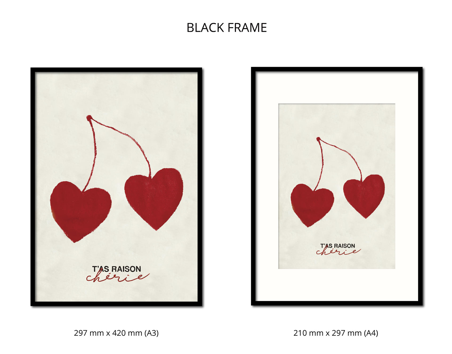 - A4와 A3 사이즈의 포스터는 같은 사이즈의 액자을 사용하고, A4 사이즈 포스터는 A3 사이즈 액자에 여백 매트가 들어갑니다. (상세이미지 참조)