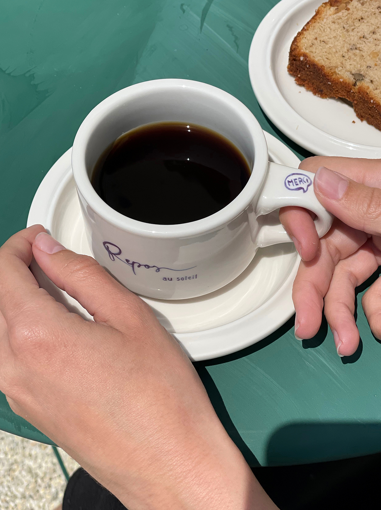테라스 카페의 여유로운 순간들을 그려봅니다. "햇살 아래의 휴식"이라는 뜻의 프렌치 레터링과 특유의 카페 의자 일러스트를 통해 쏟아지는 햇살을 마음껏 누리는 파리지엔의 여유로움을 표현하였습니다.