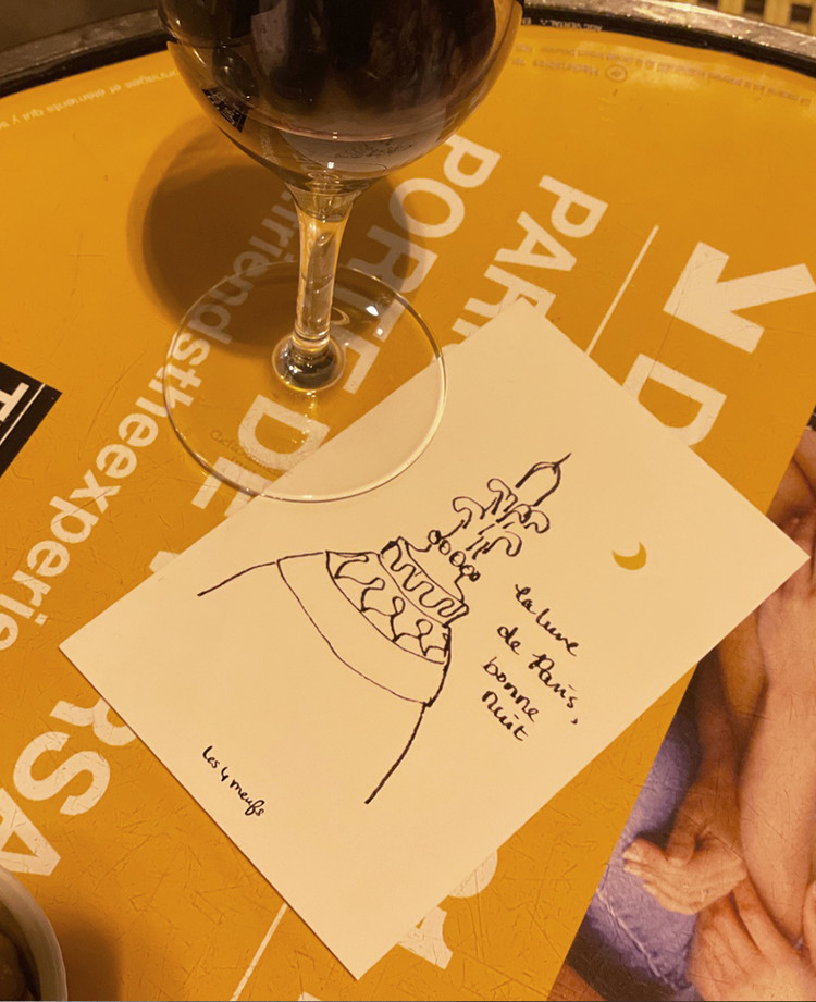 와인 한잔에 손끝으로 슥슥 그려내보는 파리의 야경과 그 너머로 밝게 빛나는 달.