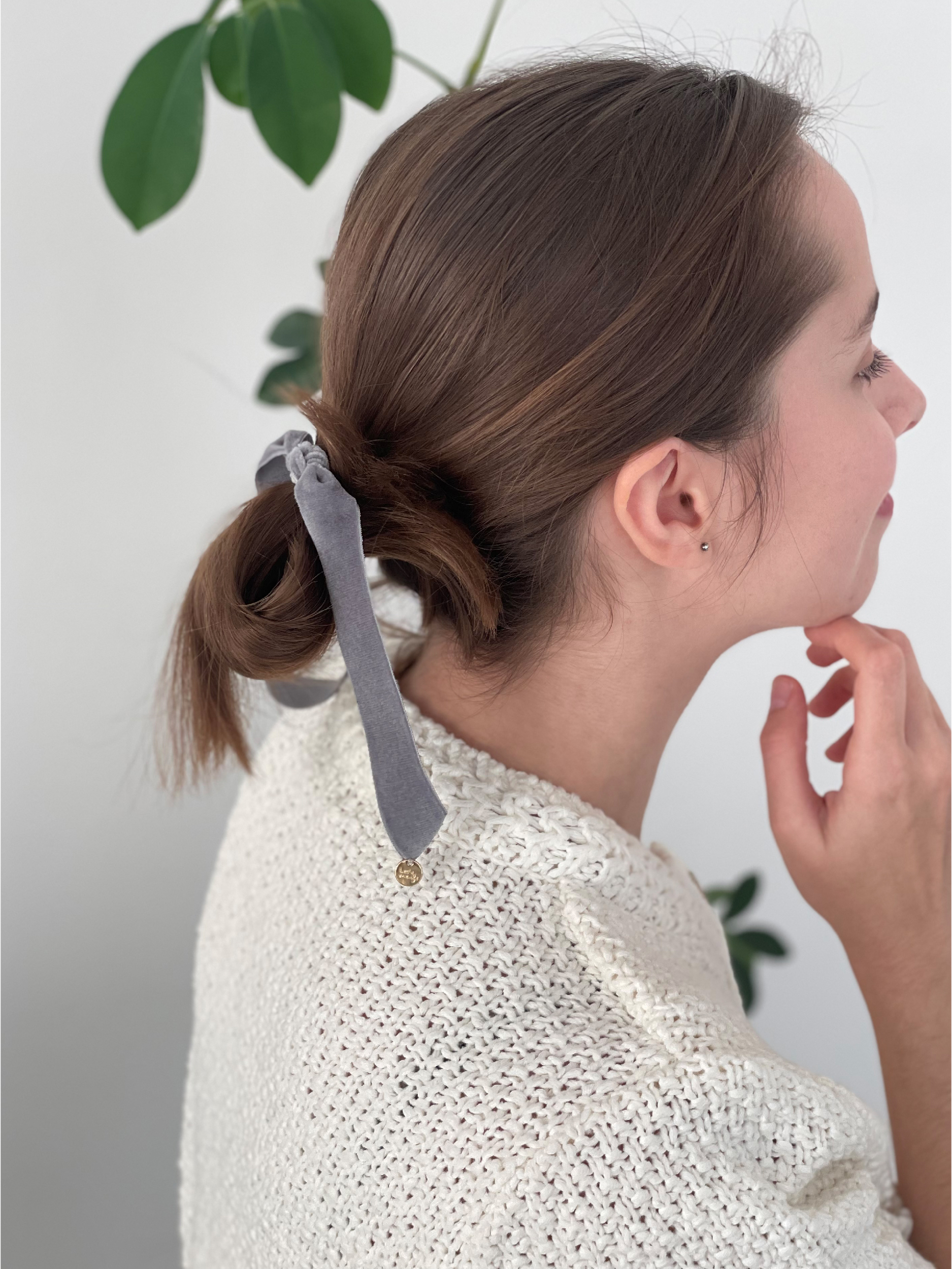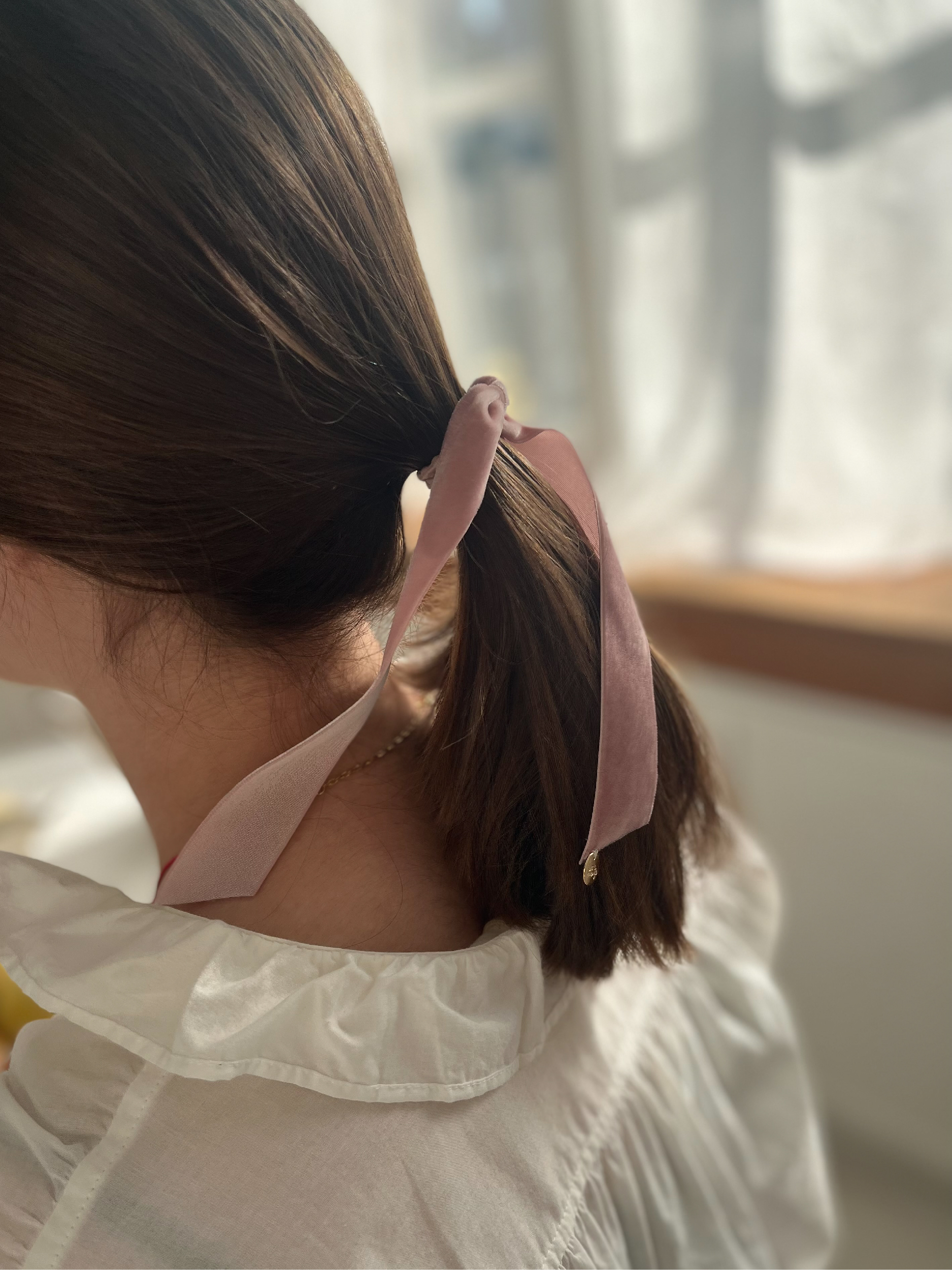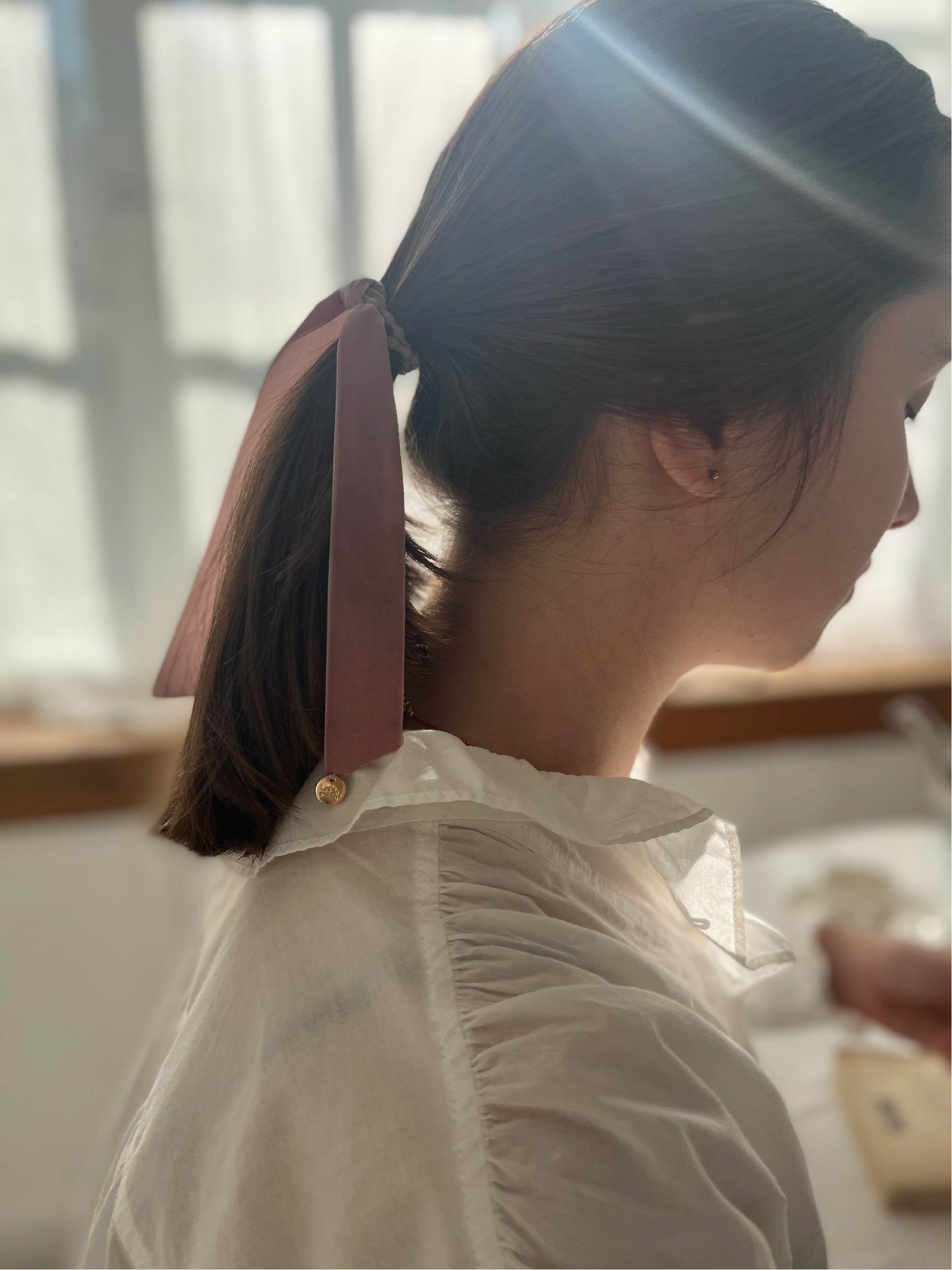 머리를 묶었을 때 자연스럽게 툭 떨어지는 존재감있는 리본이 프렌치 무드를 연출합니다.
