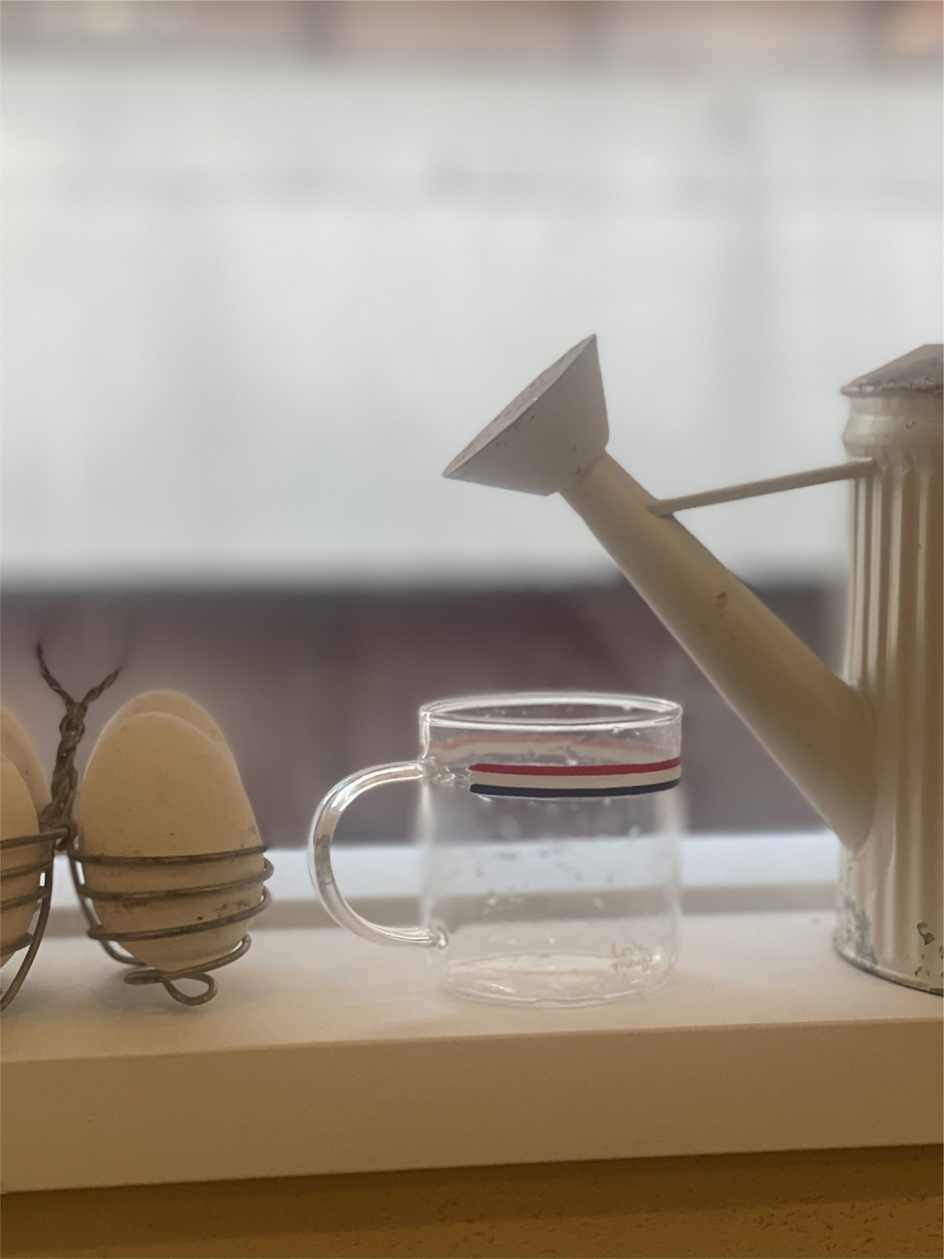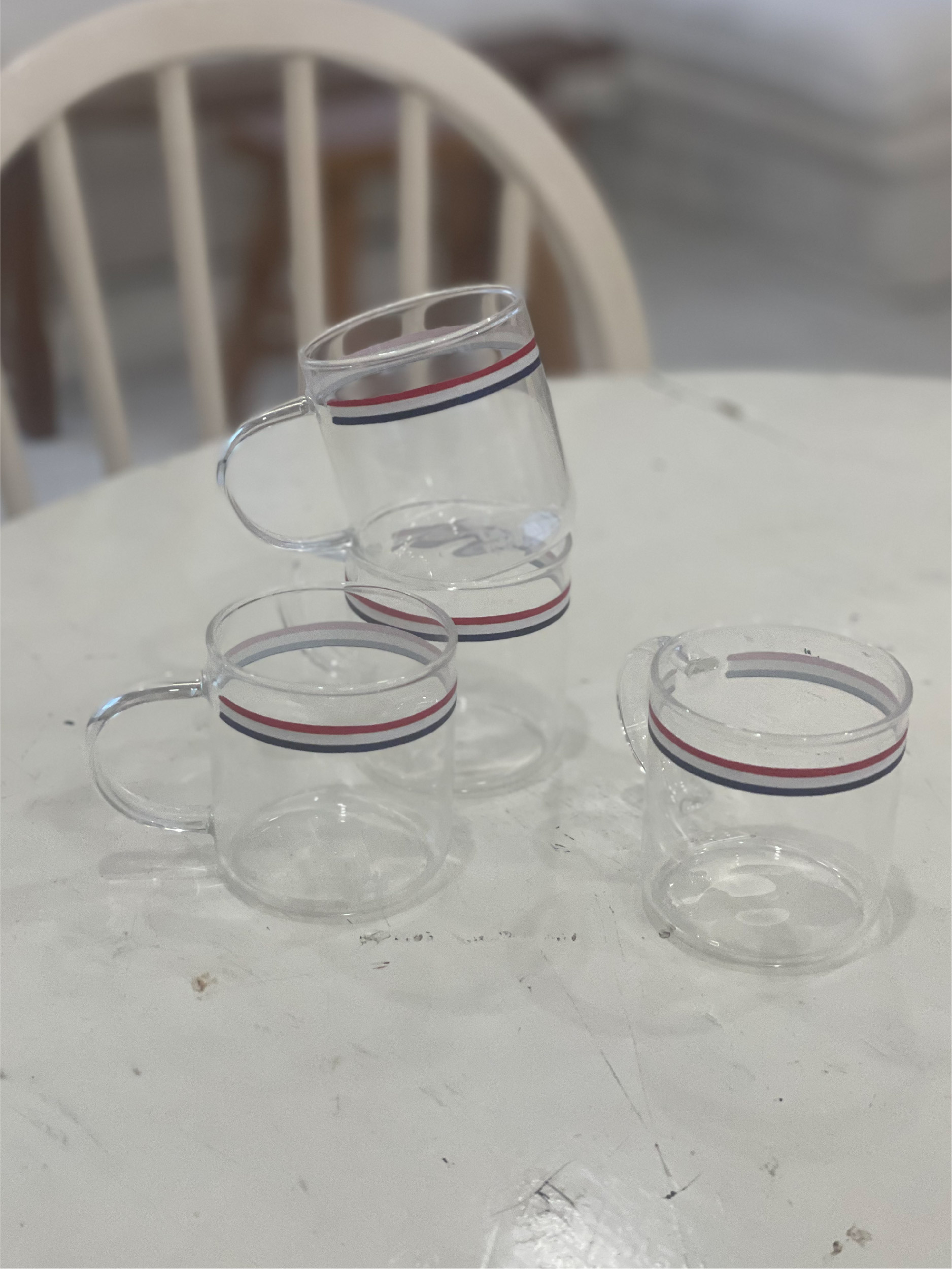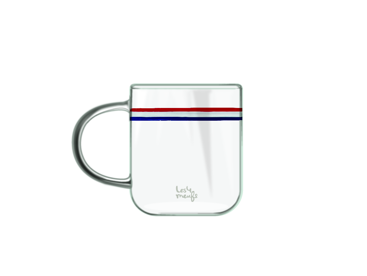투명한 머그위에 프렌치 트리콜로레 라인을 더해