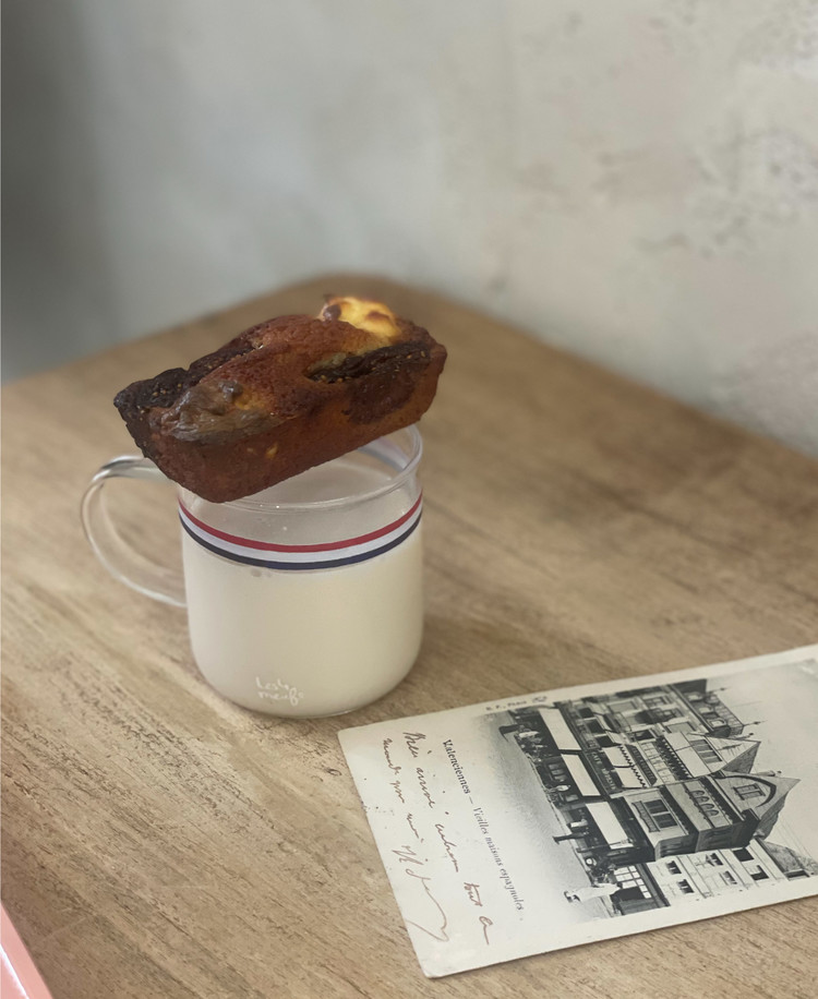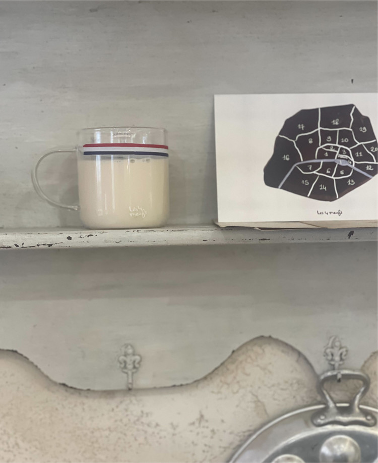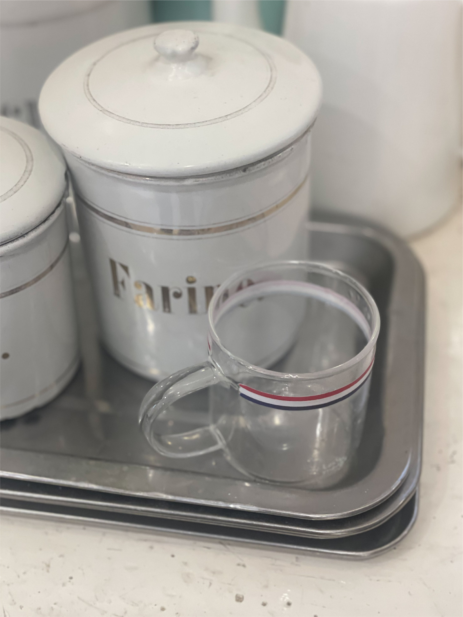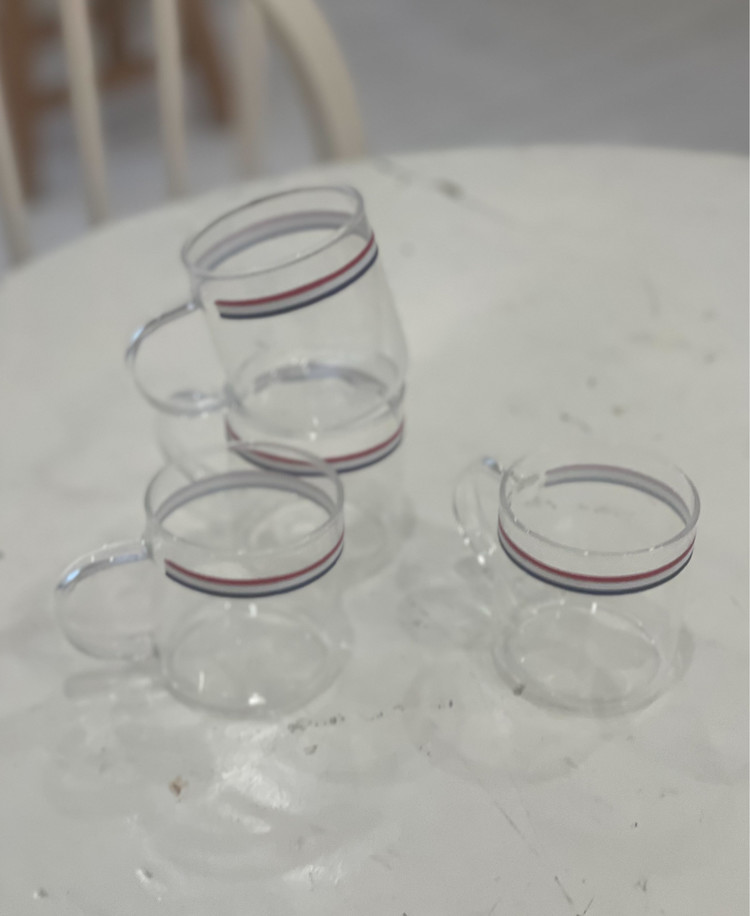 투명한 머그위에 프렌치 트리콜로레 라인을 더해